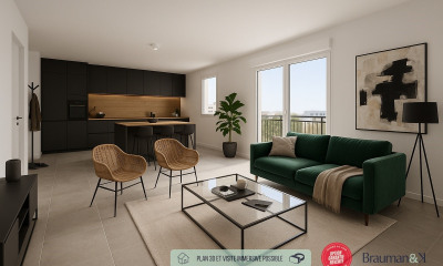 With west exposure this new apartment97 m² (about 1043 ft²) has 5 rooms including 4 bedrooms and 1 bathroom. It has a None, a terrace and 2 parkings. It's located on the 2nd floor with a lift. Others : digicode.