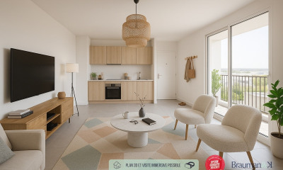 With south-west exposure this new apartment71 m² (about 763 ft²) comprises 3 rooms and 1 bathroom. It is provided with a None, with a terrace and with a parking lot. It's located on the 3rd floor with a lift. Others : digicode.
