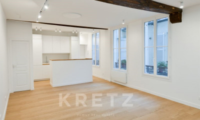On Rue des Quatre-Vents, just steps from the Luxembourg Gardens and in absolute tranquility, this charming, fully renovated and very bright apartment offers 42.35 sqm (Carrez law) of living space. Located on the 2½ floor, under the eaves, it comprises: Entrance Living room with open-plan kitchen Bedroom Shower room Sold furnished.