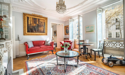 Exclusive Listing. Prime Location – In the heart of the Odéon district, just steps away from the Luxembourg Gardens. Located on the ground floor of a magnificent 18th-century building, overlooking a charming tree-filled courtyard, we are pleased to offer this superb 87 m² apartment (66.82 m² Loi Carrez) spread over three levels. Fully air-conditioned and renovated to the highest standards with quality materials, the property preserves its historic character with exposed beams, a fireplace, and chevron (point de Hongrie) parquet flooring. It boasts exceptional volumes (4.20m ceiling height) and is arranged as follows: Main Level: - An open-plan living room and kitchen. - A laundry room. Upper Level (accessible via staircase): - An office or guest bedroom, extended by a walkway providing access to a stunning custom-made wrought-iron wall library. - Guest toilets. Lower Level: - A master suite that retains an opening onto the large living room windows, offering a dramatic 7-meter vertical perspective. - A walk-in dressing room. - A shower room with an integrated Hamam (steam room). - Toilets. A cellar completes this property. The apartment is available as-is, or can be delivered fully turnkey (including kitchen, bathrooms, furnishing, and interior decoration) for an additional fee. Its exceptional location, impressive volumes, natural light, and the quality of its renovation make this apartment a truly rare find on the market.