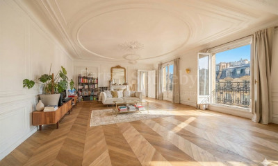 Opéra - Apartment spanning 115.61 sq.m (1,244 sq ft) of Carrez Law surface, 135.11 sq.m (1,454 sq ft) of floor surface, on the top floor of a high-end building with lift access up to the fourth floor. The 43.11 sq.m (464 sq ft) reception room comprises a lounge and open kitchen with a wide window, allowing for exceptional natural light and views over the rooftops of Paris. Two children’s bedrooms with bathroom, and a master suite with an office area for a balanced floor plan ideal for family life. Cellar also included. The high ceiling, stunning luminosity and view all create a unique ambiance, at the heart of a bustling and coveted neighbourhood.