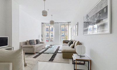 In the heart of the Bonne-Nouvelle district, on a pedestrian street, this 96.90 sq m (96.21 sq m Carrez law) apartment with balconies totaling 3.82 sq m occupies the second floor without elevator of a beautiful, recently renovated Haussmannian building with a concierge. The apartment benefits from a dual east/west exposure and unobstructed views of the Porte Saint-Denis and the Passage du Caire, providing natural light throughout the day. Original features have been preserved and blend harmoniously with the modern layout: herringbone parquet flooring, moldings, fireplaces, and high ceilings give the space a distinctly Parisian character. The entrance hall leads to a pleasant living area, designed around an open-plan kitchen, perfect for sharing meals. The sleeping area comprises three generously sized bedrooms and a bathroom with a toilet. The layout also allows for alternative configurations, such as a double living room and two bedrooms, depending on individual needs and lifestyle plans. The three balconies extend the living spaces and offer welcome views of the outdoors. The recently replaced double-glazed windows ensure excellent thermal and acoustic comfort. Located close to shops, restaurants, theaters, and public transport, the apartment is situated in a vibrant neighborhood while maintaining a peaceful and high quality of life. A property with character, generous proportions, and preserved charm, offering numerous layout possibilities in the heart of Paris. A cellar completes this property. Metro: Réaumur-Sébastopol or Sentier (Lines 3 & 4) Contact: Sandra +33 6 27 52 75 81