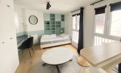 In a quiet environment, with an open view and north-east exposure this apartment24.25 m² (about 261 ft²), built in 1850, in a building of 6 floors contains 2 rooms including 1 bedroom and 1 toilet. It is equipped with a living room 13.66 m² (about 147 ft²), with a Kitchen/dining room and with a cellar. It's located on the 5th floor. Heating : Individual electric radiator. Others : intercom, digicode, fireplace, cable television.