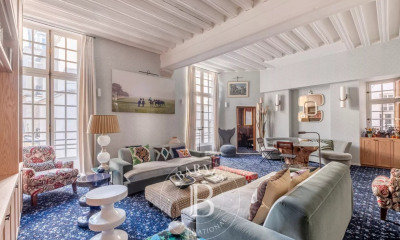 In a beautiful 17th-century building with restored common areas, on the 2nd floor with elevator, a 95 sq.m. apartment entirely renovated by an architect, comprising: Rotunda entrance gallery with wood paneling and a large window overlooking the courtyard Living room with 3.20 m ceiling height and two east-facing windows West-facing principal suite with travertine bathroom and dressing room Second bedroom with shower room Fully equipped kitchen Cellar