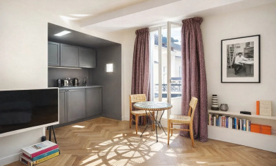 Overlooking a leafy courtyard on the second floor of a beautiful period building, this apartment presents 51.54 sq.m of living area (Carrez law). In perfect condition and not overlooked, it comprises an entrance, a living room, an equipped kitchen, a bedroom and a bathroom with WC. West-facing apartment with fireplaces and high ceilings. Sold with a cellar. Onsite concierge. Elevator access.