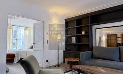 Located on the 5th floor of a beautiful period building in the Carré des Antiquaires neighbourhood of Saint Germain des Prés , this atypical apartment presents 99 sq.m of living area with a beautiful south-facing terrace of 45 sq.m (not overlooked). The interior consists of an entrance, a large living room, an open kitchen, two bedrooms, two bathrooms and a home office. Access via stairs. Lovely condominium.