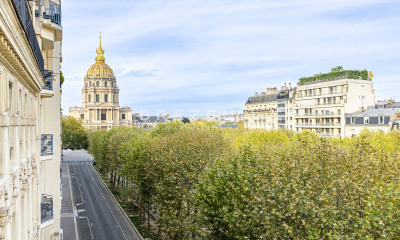 École Militaire, between Place Joffre and Place Vauban, in a luxury freestone building with janitor services, elegant, light-filled reception apartment on 3rd floor with elevator access and exceptional view of the Hôtel des Invalides Dome and Eiffel Tower. Entrance hall, double living room, dining kitchen, 3 bedrooms including a master suite with jacuzzi, study, two shower rooms, toilet. Two utility rooms. Two cellars.