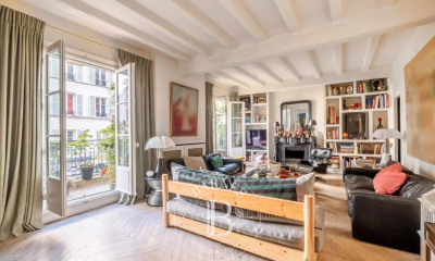 In the heart of the Gros Caillou district, in a high-standard freestone corner building with very well-maintained common areas, through-apartment of 73.31m² (72.69m² loi Carrez), with bright, optimized floor plan, wrap-around balcony and exceptional views of the Eiffel Tower and the dome of the Invalides, located on the 5th floor served by elevator. Entrance hall, vast double living room with 4 French windows opening onto the balcony, separate kitchen, two bedrooms, one with en suite bathroom, bathroom, 2 separate toilets, plenty of storage space. Cellar.