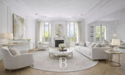 This entirely renovated duplex apartment is on the 6th and top floor of a fine Haussmannian building with beautiful common areas located just a stone’s throw from avenue George V. Decorated and furnished by an interior decorator, it offers 248 sqm of floor space and 235 sqm of living space as defined by the Carrez Law including a living/reception room and dining room with wide bay windows enjoying open views, a spacious fully equipped kitchen with dining facilities and a central island, a utility room, a complete master suite with a dressing room, a bath/shower room and a toilet, and four further suites enjoying views of the Eiffel Tower and Sacré Coeur Basilica. Air-conditioned throughout, and beautifully appointed. Cellar.