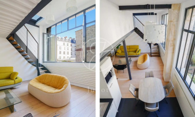 Located on the second and top floor of an old building, this duplex apartment of 80.6sqm (62.6sqm Carrez law) entirely on courtyard and crossing benefits from absolute calm. On the first level, it offers an entrance hall leading to a beautiful living room with cathedral ceiling, a dining room, a kitchen, a bedroom and a toilet. An elegant staircase leads to the upper floor, where you'll find a lovely bedroom area under the roof and a bathroom with shower, bath and toilet. With its exposed brickwork, large windows and zenithal light, this apartment combines charm and character. A rare and unique property in the heart of a lively shopping district.
