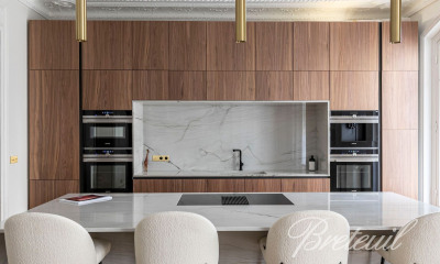 With west exposure this apartment285.09 m² (about 3065 ft²), built in 1930 has 7 rooms including 4 bedrooms, 3 bathrooms and 2 toilets. It has a living room 49.6 m² (about 533 ft²), dining room, a None and a cellar. It's located on the 5th floor with a lift. Heating : Collective gaz radiator. Others : intercom, digicode, fireplace. Fees : 3.95.