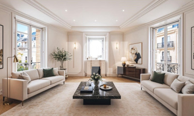 Georges Mandel neighbourhood. This ideal family apartment is on the 1st floor of a superb Haussmannian building. An entrance hall leads to a spacious living/reception room bathed in sunshine thanks to wide floor-to-ceiling windows, a dining room, a study, four bedrooms and a bathroom. The study could create a 5th bedroom if required. Cellar. A maid’s bedroom may be acquired at extra cost.