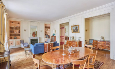 Ideally located a stone's throw from the shops on rue de la Pompe and the lycée Janson de Sailly, this bright, quiet 134m2 apartment has been perfectly renovated in a contemporary style with quality features. It is on the 3rd floor of a recent building, with only one landing. Vast double living room with open-plan fitted and equipped kitchen, ethanol fireplace, master bedroom with dressing room and bathroom (bath, shower, toilet), two bedrooms, each with its own shower room, two toilets, one of which is a guest toilet, plenty of storage space, a storeroom. Two cellars and a rental lock-up directly accessible by elevator.