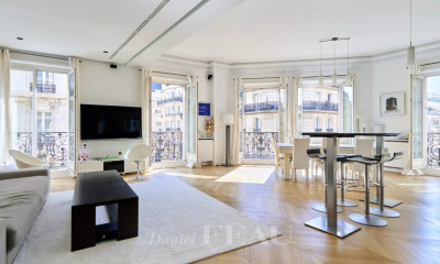 Henri Martin - Lamartine. On the second floor, served by elevator, of an attractive old stone building of high standing with refined common areas, superb family apartment renovated to a very high standard, benefiting from a functional floor plan with no loss of space, very good volumes and great luminosity thanks to its west-facing aspect. Entrance hall, double living room, dining room, separate fitted and equipped kitchen, four bedrooms, one of which is a suite with en-suite shower room and toilet, two further shower rooms, separate toilet, dressing room, plenty of storage space. Cellar