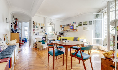 Ideally located in the heart of Les Batignolles, in a luxury freestone building, this superb 80.34sqm Carrez apartment in very good condition is on the fourth floor by elevator and benefits from unobstructed views and old-world charm. Very bright, it comprises an entrance gallery leading to a 32.01sqm living/dining room, a fitted kitchen, two large bedrooms, a bathroom with toilet and a dressing room. This apartment has a very good layout with no loss of space, attractive classic features and plenty of storage space. Janitor. A cellar completes this property. EXCLUSIVITY.