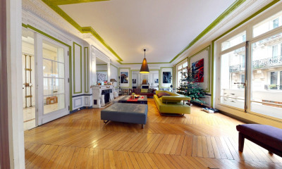 Alone on the 3rd floor landing of a high-end Haussmannian building with a lift, 291m² (3,132 sq ft) apartment featuring a hallway, a south/east-facing triple-sized reception room overlooking the street, a fitted eat-in kitchen with a pantry and a laundry room, four bedrooms including a master suite, two bathrooms, a shower room, and four toilets including a separate one. Herringbone parquet flooring, mouldings and fireplace. 3.20m (9.8ft) ceilings. Two maid's room (cannot be rented) and a large cellar also included. Apartment easy to partition and self-employed professional use authorised.