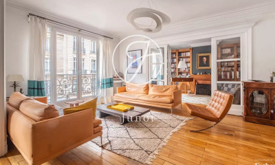 With an open view this apartment126.43 m² (about 1359 ft²), built in 1881, in a building of 7 floors has 5 rooms including 4 bedrooms, 1 bathroom and 2 toilets. It has a living room 37 m² (about 398 ft²), a Separate kitchen, 2 balconies and a cellar3 m² (about 32 ft²). Totally renovated, it's located on the 6th floor with a lift. Heating : Individual gaz. Others : parquet floor, fireplace. Fees : 4.27.