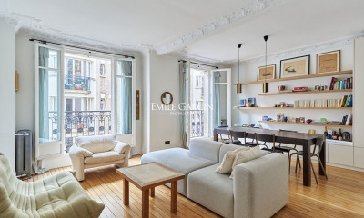 In a quiet environment, this apartment90 m² (about 968 ft²), built in 1900, in a building of 6 floors comprises 4 rooms including 2 bedrooms, 1 bathroom and 2 toilets. It is provided with a living room 40 m² (about 430 ft²), with a Fitted kitchen/dining room and with a cellar. It's located on the 6th floor. Heating : Individual gaz radiator. Others : digicode, fireplace.