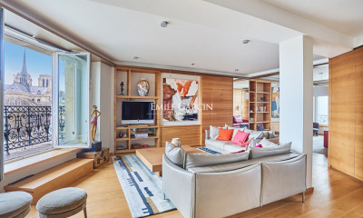 EXCLUSIVE - On the Île Saint-Louis, in a prestigious location, this exceptional apartment occupies the entire fifth floor of an 18th-century building. Direct access via private lift, live-in concierge. The property is divided into two separate areas: the Quai side affords an unobstructed view of the Seine from the lounge with balcony, dining room, kitchen, two bedrooms and two bathrooms. The independent courtyard side, meanwhile, has an entrance, kitchen, lounge, two bedrooms and bathroom. Unique setting and a mix of historic charm and stunning views of Paris’ monuments.