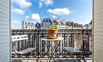 Porte de Passy. Attractive atypical apartment with a surface area of 251.64 m² loi Carrez. Second floor: entrance hall, double corner living room, dining room, kitchen/dining room, three bedrooms, three bathrooms, dressing rooms, plenty of storage space. Access by interior staircase to a bedroom with en-suite shower room and a large garden with trees. Two cellars. Utility room with toilet and water point. Two parking spaces.