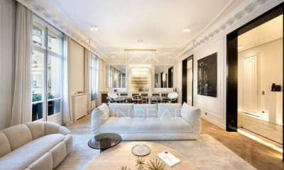 Jardin du Ranelagh-Porte de la Muette, in a very secure environment, on the 3rd floor of the Walter buildings, 403m2 reception and family apartment with superb views, spacious and well laid-out: entrance gallery, triple reception room with fireplace, living room, dining room, fully fitted and equipped kitchen, pantry, three beautiful suites (bathroom, toilet and dressing room). Annexes include a 35m2 two-room apartment, two cellars and three boxes in the building's basement.