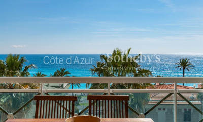 Superb 3-room apartment with panoramic view of the Baie des Anges – Nice Ideally located on the 5th floor, a stone's throw from the Mediterranean University Center, this magnificent corner 3-room apartment offers an exceptional panoramic view of the Baie des Anges thanks to its three large bay windows that bathe the living room in light. The apartment has a beautiful separate kitchen, a bathroom, a modern shower room, and a separate toilet. The sleeping area features two spacious and bright bedrooms, both equipped with reversible air conditioning for optimal comfort in all seasons. A cellar completes this rare property on the market.