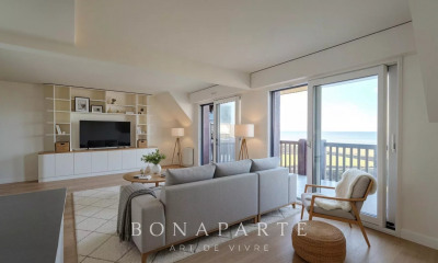 West-facing with stunning sea view, split-level three-bedroom apartment, located on the top floor of a luxury residence with lift, caretaker, heated swimming pool and enjoying direct access to the magnificent Ammonites beach in Bénerville. Covering an area of ??96 m2, the apartment has on the ground floor a large living room with American kitchen, opening onto a double balcony, a bedroom with shower room and a toilet. On the 1st floor, two bedrooms, one with balcony sea view, shower room, toilet. A parking space and a cellar complete this property with exceptional characteristics. “Information on the risks to which this property is exposed is available on the Georisques website http://www.georisques.gouv.fr”