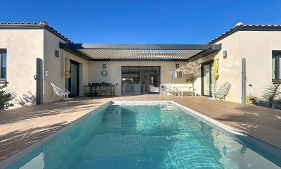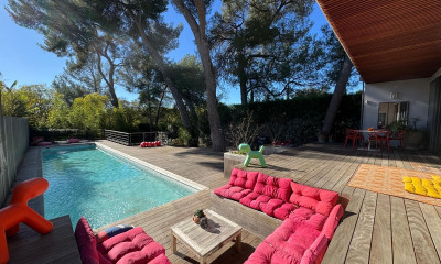 In the hills of Nimes lies a true gem nestled in a green and peaceful setting. This superb 170 m² villa on 3000 m² of land boasts high-quality, up-to-date amenities. A magnificent, fully equipped kitchen, a large, very bright living room, 3 suites with dressing rooms and bathrooms each. All the dressing rooms are custom-fitted. The septic tank is new. A laundry room. A wine cellar. The wooded and flowery garden opens onto a huge terrace with a swimming pool (the pump is new) and its small pond. A friendly lounge area for evenings with a view of nature. All the comfort features are also there, the thermodynamic heater is also new. We were won over by the beauty and zen.