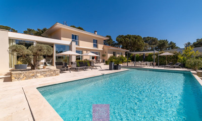 With south exposure this house (Luxury villa) 162 m² (about 1742 ft²), built in 2013, with a land size of 2180 m² (about 0,54 acres) has 5 rooms including 4 bedrooms, 1 bathroom and 2 toilets. It has a living room 72 m² (about 774 ft²), a Fitted kitchen/dining room, a swimming pool, a terrace, a garage and 4 parkings. Heating : Individual. Others : fireplace.