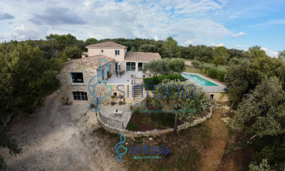Located in a shopping village just 10 minutes from Uzès, this magnificent stone property has been carefully renovated with the utmost respect shown to its period character and original features. Offering the perfect balance between authenticity and modern comfort, it presents spacious and welcoming living areas with high ceilings, open beams, cement and terracotta tiled floors, and antique fireplaces. The kitchen, which opens onto a dining room, is perfect for long meals with friends or family. Several terraces and intimate courtyards offer plenty of outdoor spaces, ideal for relaxing or reading. The house also has six delightful ensuite bedrooms and a study. Outside, the garden and its swimming pool (14 x 4m) is ideal for relaxing away from prying eyes. A large adjoining barn offers excellent potential for additional development: it could be converted into a garage, a gîte, an artist's studio, a reception room or a wellness area, depending on your desires. Vaulted stone cellars complete this exceptional property. This rare and elegant abode, full of charm, would make an ideal main residence, second home or guest house.
