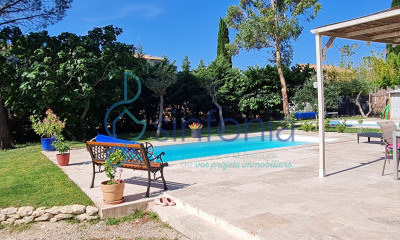 In a quiet environment, with an open view this house 170 m² (about 1828 ft²), with a land size of 1900 m² (about 0,47 acres) comprises 7 rooms including 5 bedrooms, 1 bathroom and 2 toilets. It is provided with a living room, with a Fitted kitchen/dining room, with a swimming pool, with 2 garages and with a cellar.