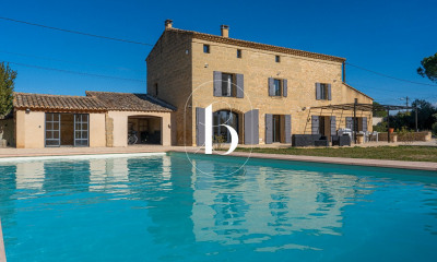 Exclusively, Sindy Micots Immobilier presents this magnificent bastide, peacefully situated in a village with amenities, just 3 km from Uzès. This villa boasts an exceptional 4200 m² park with a swimming pool. Upon entering, a spacious living room opens onto a south-facing terrace overlooking the garden. A functional, fully equipped kitchen provides access to a pantry/laundry room and garage. A wide hallway leads to two beautiful ground-floor bedrooms, each with its own shower room. Upstairs, the sleeping area offers two further bedrooms and two shower rooms. Features include an automatic gate, reversible air conditioning, and parking for several cars. An exceptional setting, with a building plot offering numerous possibilities.