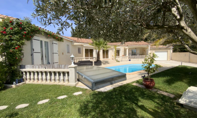 6 km from Uzès, the Sindy Micots Immobilier agency offers you in a village with amenities, a recent villa on beautiful landscaped grounds of 1200 m2 with swimming pool. This house benefits from a living space composed of a cozy living room, library with closed insert opening onto a large terrace and view of the swimming pool, an equipped kitchen with dining area, as well as a large dining room bathed in light by large bay windows. A master suite on the ground floor, dressing room and bathroom. Upstairs, 3 bedrooms share a bathroom with walk-in shower. A tiled room with laundry area can be converted into a workshop, office or bedroom. Petanque court, garden shed. Car parking lots. Impeccable condition. Reversible climate control.