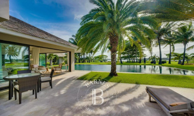 Located in a renowned IRS estate in Bel Ombre, this contemporary single story villa of 438 m² is located on a plot of 1464 m². It has 4 en-suite bedrooms, two of which have their own terrace and the villa offers generous kitchen/ living/ dining spaces leading onto the terrace area with a spacious garden, swimming pool and a kiosk. The property offers a panoramic view of the south coast, its sea and the mountains. Several models of villas are available to build on this plot of land. Land owners can as well take the opportunity to design their own unique villa in accordance with architectural guidelines. The estate has an internationally renowned golf course, a second golf course of international standard is in process of being created. Property owners have access to the different services of the domain, a golf clubhouse, a beach club, a private gym with spectacular outdoor swimming pool, the castle of the estate and access to 5-star hotels which are located on the beach. Registration fees, notary fees, and various taxes are included in the purchase price of the land. Permanent resident permit available with the acquisition of this property.