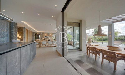 This 410 m² villa includes four bedrooms and is located on the island's most popular golf course, where three editions of the European Tour have taken place with professional golfers. This property is full of surprises, as it features two pools—one freshwater and one saltwater—a home cinema, a sauna, a games room with billiards, a library, a rooftop for enjoying the most beautiful sunsets, three kitchens (one of which is outdoors), a jacuzzi, an outdoor play area with ping-pong, basketball, and badminton, a UV tanning machine, gym equipment, and, of course, your own golf cart.