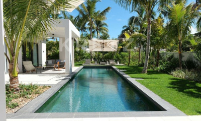 Situated on an exclusive tropical peninsula, bathed by the crystal-clear waters of the Indian Ocean and surrounded by a lagoon of azure blue, this stunning luxury villa represents a rare opportunity in the real estate market on the east coast of Mauritius. Offering full ownership, this villa stands out for its unique architecture, designed to blend harmoniously into its natural surroundings while ensuring total privacy and absolute comfort. This exceptional property, approximately 540 m² in size, sits on a vast 1,546 m² plot of land. Spread over two levels, the villa offers four spacious bedrooms, each with breathtaking views of the lush gardens or the sea. The elegant layout of the indoor and outdoor spaces has been designed to provide a seamless and refined living experience, ideal for those seeking a peaceful and luxurious lifestyle. Outside, a large private pool invites you to relax under the tropical sun, while the shaded terraces offer perfect outdoor living spaces for unwinding or entertaining. A generous and secluded garden creates a true oasis of tranquility, where the surrounding nature is ever-present. The villa also features a garage with space for two vehicles. As the owner of this villa, you will have access to the exclusive amenities and services of an internationally renowned 5-star resort. These services include gourmet restaurants, a luxury spa, sports facilities, and a dedicated concierge service. Every detail has been designed to offer an unparalleled quality of life, where well-being and serenity are paramount. For those seeking an investment opportunity, the villa can be included in a high-end rental management program run by the resort. This program allows you to generate income while benefiting from complete management of the rentals and maintenance by a dedicated team, ensuring total peace of mind. Finally, the purchase of this villa grants you and your family permanent residency, allowing you to fully enjoy the tax benefits and exceptional living conditions that Mauritius offers. Whether for a primary residence, a secondary home, or an investment, this property perfectly combines luxury, serenity, and exclusivity in one of the most beautiful settings in the Indian Ocean. Contact us today to arrange a private viewing and discover this exceptional property.