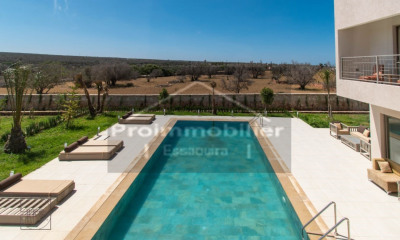 Vaneau Maroc offers you a sumptuous palace set in 4 hectares of land, including 12,000m2 of undeveloped land. The property is ideally located in the heart of the Palmeraie, in the urban zone, a stone's throw from the Palais Ronsard. The estate comprises 6 independent villas, each with 4 suites. 1 on the ground floor and 3 upstairs. Possibility of adding a 5th. Ideal for an investor or events company wishing to organize events or operate as a guest house. Very high development potential. All our properties are sold titled.