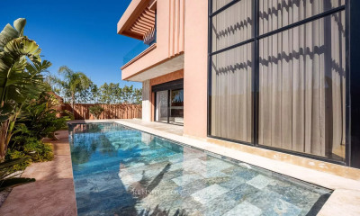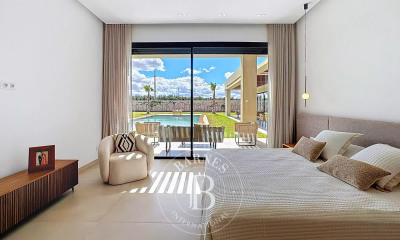 Magnificent modern villa for sale in Marrakech, ideally located close to the city and the most prestigious golf courses. This property offers 4 spacious and elegant bedrooms, spread over 500 m2 of living space. Featuring a contemporary design and top-of-the-range finishes, it also includes bright living spaces, a fully equipped kitchen, as well as a landscaped garden and private swimming pool. Perfect for those seeking comfort and luxury in Marrakech, this villa represents an exceptional opportunity on the property market.