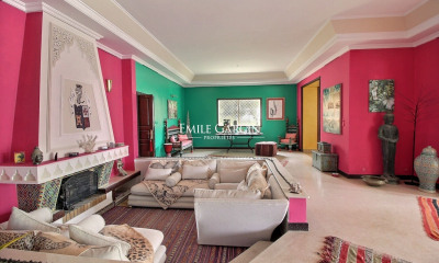 Sotheby's International Realty presents a unique investment opportunity in the luxury hospitality sector in Marrakech. Ideally located on the Amizmiz road, near the prestigious Royal Palm estate, this property, successfully operated as a guesthouse, perfectly combines elegance, comfort, and profitability. Set on one hectare of land, the villa boasts over 1.150 sqm of living space, offering generous volumes throughout. The property features 14 en-suite bedrooms, ensuring privacy and comfort for every guest. Three spacious living rooms create a convivial atmosphere, while an impressive 450 sqm reception hall stands as the heart of the estate, ideal for hosting weddings, events, and seminars. Outside, a lush landscaped park and a heated private swimming pool provide a true haven of peace, perfect for relaxation under the Moroccan sun. Sold fully furnished, this villa is ready for immediate operation, making it a rare opportunity for investors looking to enter the high-end hospitality business or expand their portfolio. With proven financial results from its guesthouse activity, this property will undoubtedly appeal to the most discerning investors. Additional features: central air conditioning, mature landscaped gardens, and thoughtfully designed outdoor spaces. The scenic road connecting Marrakech to the village of Amizmiz, at the foot of the Atlas Mountains, also leading to the Lalla Takerkoust Lake. For more information, please contact Charles Detchessahar at +212 6 61 06 32 49.