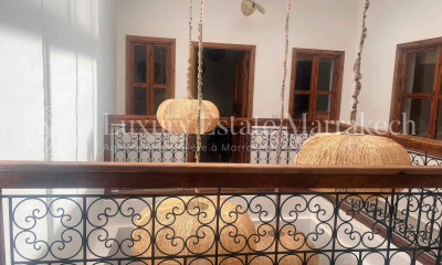 Impressive modern residence on the first line of the Amelkis golf course, built on a beautiful plot of 2200m2 facing the Atlas mountains. The villa is built on 3 levels, with a spa area including a hammam, sauna, gym, party room, and home cinema in the basement. On the ground floor, a spacious living room of 200m2 opens onto the pool and golf course through large bay windows, along with a guest bedroom. Upstairs, 5 beautifully furnished guest bedrooms with terraces and en-suite bathrooms. Outside, a heated infinity pool with an integrated jacuzzi offers stunning views of the golf course and Atlas mountains!! The villa is sold fully furnished.