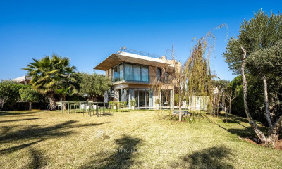 Vaneau Morocco, a luxury real estate agency in Marrakech, offers you this magnificent single-story villa nestled on a 3500m² plot. Located in Targa, just 10 minutes from the French school, this villa with a human-scale design combines serenity and Moroccan architecture with high-quality finishes. The property consists of a double living room with a fireplace that opens directly onto the garden. The large kitchen is also accessible from the outside, via the parking area, where you will find 2 staff quarters. The villa features three bedrooms with their en-suite bathrooms and a master bedroom that overlooks the pool. A beautiful 3500m² garden surrounds the property, allowing you to enjoy unforgettable moments with family or friends. If you are looking for a single-story villa near the French school, Vaneau Morocco, a luxury real estate agency in Marrakech, invites you to contact us to arrange a visit.