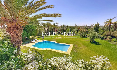 Vaneau Maroc, a luxury estate agency in Marrakech, is offering this beautiful 518m² contemporary villa for sale, ideally located on a prestigious golf course just 15 minutes from the city centre. This luxurious villa with its high-quality finishes is being sold with its high-end furniture. It comprises an entrance hall leading to a large, bright living room and a dining room adjoining the terrace with its swimming pool, five suites with en-suite bathrooms, two kitchens in the basement and a bedroom. The value of the furniture included in the sale price is estimated at €100,000. Buyer's fees 3% in addition to the price.