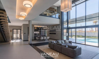 Villa Adila is a beautiful modern house, freshly renovated, located 10 minutes from downtown on the road to Tahanaout. Within a secure golf residence, Villa Adila stands out with its clean and contemporary lines. Built on a surface of 600 m², with beautiful heights under the ceiling and openings on the beautiful outside. The villa is on the first line of the golf course offering a clear view of the Atlas Mountains, which gives it a breathtaking landscape. At any time of the day, and especially during sunsets, the unique view offers a dazzling light show. Villa Adila is spread over 4 levels, with beautiful reception areas on the first floor, and 3 bedrooms and a suite on the first floor. Do not hesitate to contact us if you wish to have more information, or to arrange a visit.