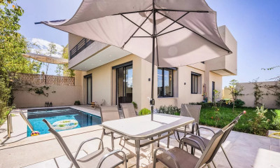 The Vaneau Maroc real estate agency offers this beautiful riad for sale. This riad offers a magnificent investment opportunity in the heart of Marrakech, combining modern comfort and traditional charm. Located near iconic sites such as Jemaa el-Fnaa Square and the Bahia Palace, it enjoys easy access by car. Spanning approximately 80 m², the riad features a pleasant living space including a patio with a plunge pool and a hammam, perfect for relaxing after a day of exploring. Inside, you will find a fully equipped kitchen and a cozy living room. Upstairs, a small lounge/library and two bedrooms with bathrooms provide a cozy and intimate space. The second floor also houses a bedroom with a bathroom and a magnificent terrace equipped with a dining area, a solarium, and a heated jacuzzi, all with views of the Koutoubia Mosque. The entire riad is air-conditioned, and the patio can be closed off with a glass roof, adding to its appeal. Sold furnished and operational as a tourist rental, it represents an excellent turnkey investment. Don't miss this opportunity to own a unique property in Marrakech. Buyer's fee: 3% including tax in addition to the sale price.