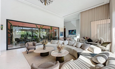 VANEAU MAROC offers you a splendid villa in Marrakech, located on the road to Fes, just 30 minutes from the heart of the city. Nestled on a 5000 m2 plot of land, this exceptional residence spans 450 m2 and provides a haven of peace for those in search of tranquility. Upon your arrival, you will be captivated by the serenity that emanates from this property, a true enchantment for the senses. The villa consists of five elegantly arranged suites, a billiard room that could be transformed into a comfortable guest apartment, a dedicated space for sports activities, a pool with a panoramic view of a lush garden, a fully equipped kitchen, and two spacious covered terraces. The living room, with a generous area of approximately 100 m2, is a friendly and warm space that centers around a majestic suspended fireplace. For ultimate relaxation, this Marrakech home also features a hammam. In the garden, you can unwind in the shade of olive trees or lounge by a superb pool under the gentle sun. If you are a golf enthusiast, you will be delighted to know that the prestigious Amelkis and Golf Royal courses are less than 15 minutes away by car. All our properties are sold with titles.