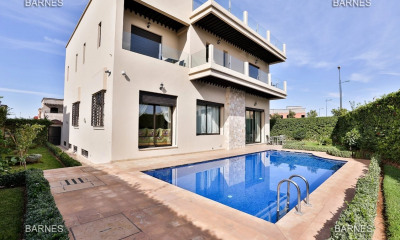Exceptional New Development – ??Ourika Road, Marrakech Vaneau Maroc real estate agency is pleased to present a new residential development located on the highly sought-after Ourika Road, just 15 minutes from the center of Marrakech. This exclusive estate, designed to blend contemporary elegance with the Moroccan art of living, offers a peaceful living environment in the heart of an exceptional natural setting. A contemporary villa off-plan Designed in harmony with the surrounding nature, the Type 2 Villa captivates with its modern and refined architecture, where clean lines and noble materials combine to create a living space that is both warm and sophisticated. Upon entering, a spacious hall leads to the various rooms of the house. The villa includes four bright bedrooms, each with its own private bathroom, including a superb master suite with its own dressing area and an unobstructed view of the garden. The reception area, living room, and dining room open generously onto the outdoors through large bay windows, inviting natural light to enhance every space. A modern and functional fully equipped kitchen completes this living area, along with a laundry room and a guest toilet. Outdoors designed as a haven of peace Outdoors, everything has been designed to offer a unique experience, where calm and serenity reign supreme. The villa opens onto a vast landscaped garden, meticulously designed with Mediterranean vegetation: palm trees, olive trees, and aromatic plants. Shaded terraces, relaxation areas, and discreet pathways invite you to fully enjoy sunny days in a refined and convivial atmosphere. At the heart of this enchanting setting, a large private swimming pool becomes the true center of family and friends' life, ideal for cooling off or relaxing under the Marrakech sun. Delivery and Services Delivery of this exclusive development is scheduled for October 2027. Several villa configurations are available to suit your needs and preferences, each boasting high-quality finishes and a superior level of comfort. Buyer's fees: 3% in addition to the sale price. Vaneau Maroc supports you through every stage of your real estate project in Marrakech: from customizing the plans to handing over the keys, with personalized follow-up and expert advice.