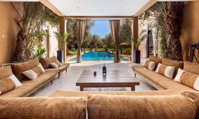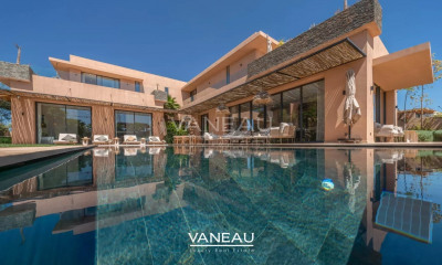 Villa Mona is a charming villa located a few kilometers from Marrakech's main golf courses. Its generous proportions and elegant materials (woodwork, marble, etc.) will captivate you. Villa Mona opens onto a stunning entrance hall leading to a double reception room with two living/dining areas. The fully equipped kitchen is semi-open to the dining area. The ground floor also offers two bedrooms with storage and bathrooms, as well as a magnificent suite with a dressing room and marble bathroom. A bright staircase leads to the upper floor, which comprises a suite with terraces, a bathroom, and storage. Outside, you can fully enjoy the Moroccan sun, summer and winter, with a splendid swimming pool in the lush, shaded garden. There is also an outbuilding with two guest bedrooms, each with a bathroom and dressing room. Villa Mona also benefits from a staff bedroom, a garage, and a utility room with an electrical panel and pool maintenance equipment. The entire house features central heating, air conditioning, underfloor heating, double glazing, and sound and thermal insulation. A well and solar panels provide electricity to the property. For more information or to schedule a visit, please do not hesitate to contact us.