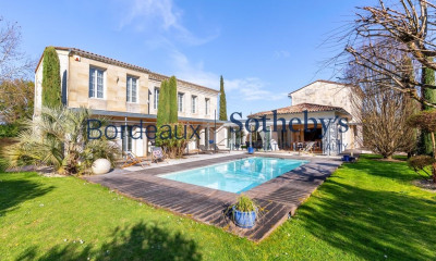 Nestled in the tranquil countryside just 10 minutes from Libourne, this exquisite property has been meticulously renovated with a keen eye for detail and elegance. A picturesque driveway bordered by young alders welcomes you to two charming stone buildings that face each other across a spacious courtyard. This courtyard is surrounded by low stone walls, sturdy posts, and elegant iron railings and gates, creating a serene and secure environment. The estate boasts nearly 1,400 m² of buildings and spans 2.5 hectares of lush parklands and meadows. The main residence is a stunning Girondine-style stone house featuring three grand reception rooms, a state-of-the-art kitchen, seven spacious bedrooms, a bathroom, a separate toilet, and two well-appointed shower rooms with toilets. These rooms are thoughtfully divided into two distinct areas, perfect for parents and children. With an expansive floor area of almost 375 m², this home offers ample space and is bathed in natural light thanks to its large, well-placed windows. Adjacent to the main house is a 60 m² orangery, adorned with antique wrought iron bay windows, a travertine floor, and walls of ashlar and rubble stone. This elegant space seamlessly connects the main house to the adjoining outbuildings, which include a 150 m² room and a 195 m² garage. Across from this complex, additional buildings include a 96 m² detached house currently generating rental income, a nearly 300 m² barn, and a semi-enclosed swimming pool area, perfect for leisurely afternoons. Maintained in impeccable condition, this property is ideal for a gîte, bed and breakfast, or any hospitality venture. It is also perfectly suited for a large family seeking an abundance of space. Its idyllic location makes it a truly privileged retreat.