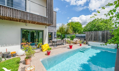 With south exposure this house (Contemporary house) 223 m² (about 2397 ft²), with a land size of 715 m² (about 0,18 acres) has 8 rooms including 6 bedrooms and 2 toilets. It has a living room, a Fitted, a swimming pool, a terrace and 3 parkings. Others : fireplace.