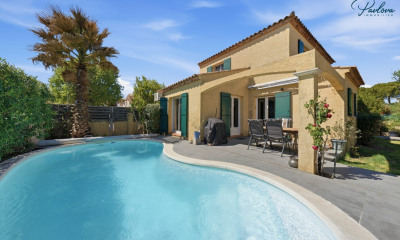 With an open view this house (Luxury villa) 171.5 m² (about 1844 ft²), built in 1983, with a land size of 700 m² (about 0,17 acres) has 7 rooms including 5 bedrooms and 2 toilets. It has a living room 40 m² (about 430 ft²), a Fitted separate kitchen, a swimming pool, a terrace, 3 garages and 3 parkings. Heating : Individual reversible airconditioning. Others : fireplace.